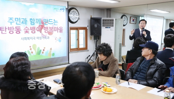 대전 서구(구청장 장종태)는 5일 탄방동 주민센터에서 지역 주민과 여성친화 서포터즈 회원 등 50여 명을 대상으로 ‘탄방동 숯뱅이 행복마을 사업성과 보고회’를 열었다.