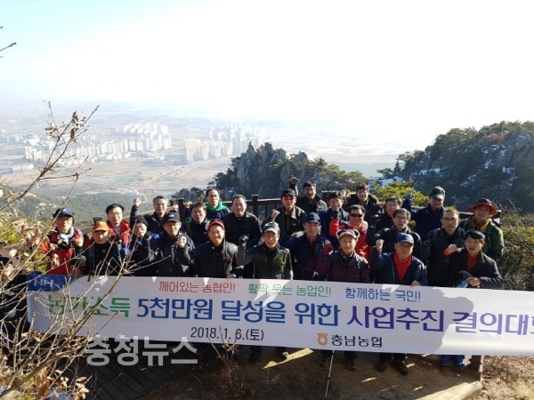 농협 충남지역본부(본부장 조소행)는 6일 홍성군에 위치한 용봉산에서 ‘농가소득 5천만원 달성과 1등 충남농협 만들기’ 위한 사업추진 결의대회를 개최했다.
