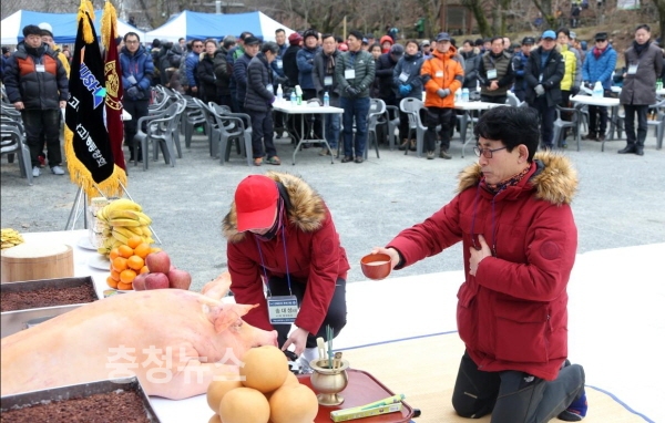우송고(대전상고) 총동창회 회원들로 구성된 '청원산악회'가 올 한해 3만5000여 명 동문의 무사안녕과 행운을 기원하는 시산제를 올렸다.