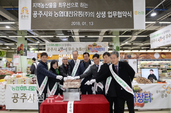 지난 13일에는 농협대전유통과 공주시 농특산물 판매활성화를 위한 업무협약을 맺기도 했다. 협약을 통해 농협대전유통은 지역농특산물 판매활성화에 역점을 두고 공주시 농특산물 입점 및 홍보판매에 적극 지원해 나가기로 했다.