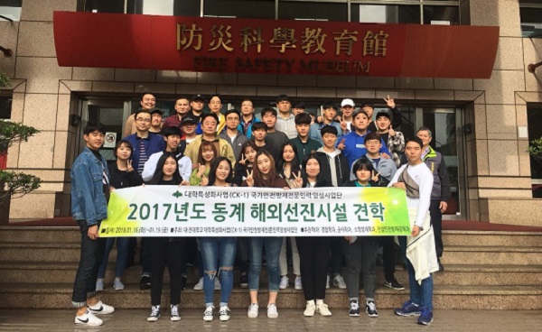 대전대 국가안전방재전문인력양성사업단(CK-1 사업단)은 소속 학생 30명이 지난 16일부터 19일까지 대만의 방재과학교육관의 방문을 통해 해외 선진 안전방재 시설을 체험하고 돌아왔다고 21일 밝혔다. 이번 방문은 지진 발생이 잦은 대만의 지진 대피훈련과 화재대피훈련 등의 체험을 위한 목적으로 진행됐다.