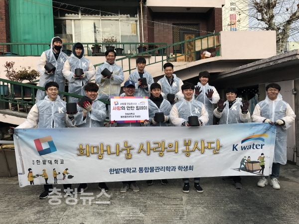국립 한밭대학교(총장 송하영)는 통합물관리학과 학생들이 지난 20일 오전 대전 중구 대사동 쪽방촌을 찾아 ‘사랑의 연탄 봉사’ 활동을 실시했다고 밝혔다.