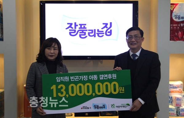 잘풀리는 집 미래생활(주)(대표이사 변재락)은 22일 세종시에 위치한 잘풀리는 집 미래생활(주) 본사에서 초록우산어린이재단 대전지역본부(본부장 박미애)에게 대전지역 빈곤가정 아동 결연 후원금 1천3백 만원을 전달했다.