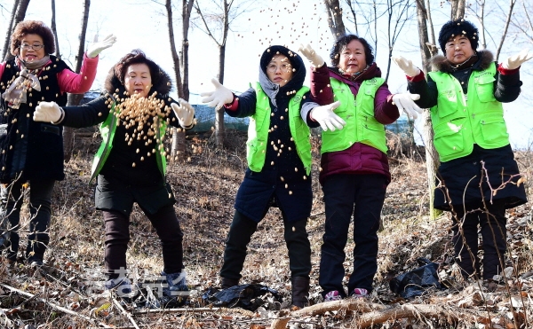 (사)자연보호중앙연맹 대전광역시 중구협의회(회장 김성배) 주관으로 회원 30여명이 참여해 산기슭 곳곳에 사료 등 200kg의 먹이를 놓았다.
