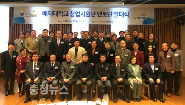 배재대학교(총장 김영호)가 기업인‧교수 등 50명 규모의 창업 멘토단을 발대했다. 멘토단은 앞으로 대학생과 예비 창업자에게 아이템 진단, 기술검증 등 ‘족집게 과외’에 나선다.