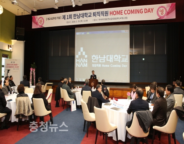 한남대(총장 이덕훈)는 25일 오전 11시 교내 한남글로벌센터 2층 무어아트홀에서 퇴직한 직원들을 초청, ‘개교 62주년 기념 퇴직직원 홈커밍데이’를 개최했다.