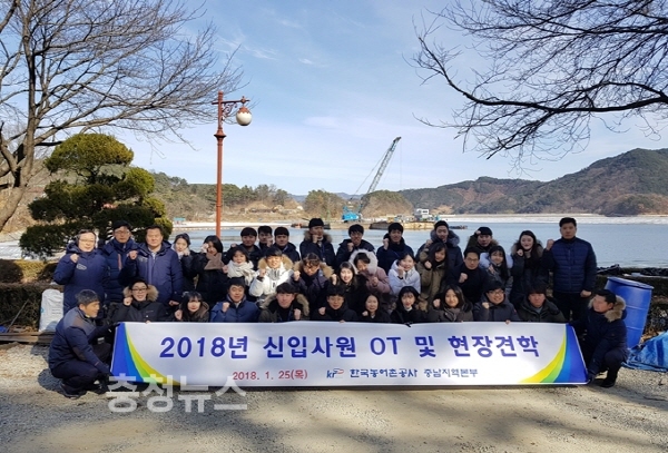 한국농어촌공사 충남지역본부(본부장 김병찬)는 25일 2018년 본부 신입직원 30명을 대상으로 공사의 조직분위기를 조기에 익히고 수행중인 업무에 대한 이해도 제고를 위한 오리엔테이션(OT)을 개최했다.