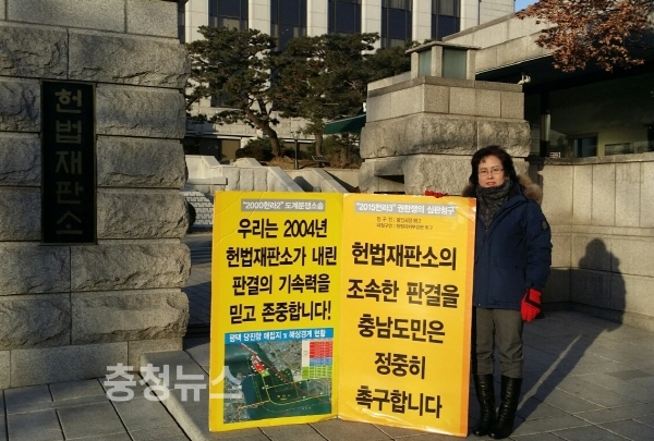 당진시의회(의장 이종윤)가 24 ~ 25일 서울 헌법재판소 앞에서 영하의 추위를 무릅쓰고 행정구역 지형도상 해상경계선 평택항일원 당진시 관할의 당위성 호소를 위한 1인 피켓시위 활동을 펼쳤다.