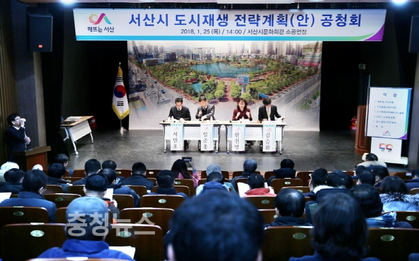 충남 서산시가 지난 25일 시 문회회관에서 전문가 및 지역주민 100여명이 참석한 가운데‘도시재생전략계획안’공청회를 개최했다.