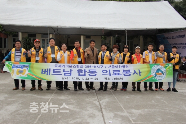 국제라이온스협회 356-B(대전)지구 김동원 총재를 비롯한 회원과 서울 아산병원은 합동으로 지난 22일부터 25일까지 베트남 흥옌성 포히옌 읍에서 의료봉사를 가졌다.