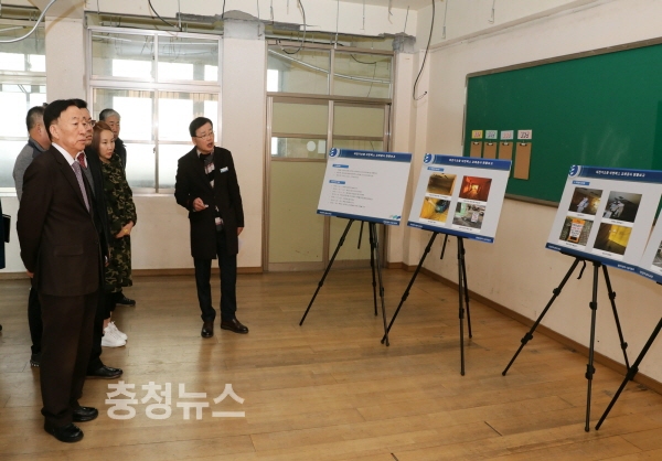 설동호 대전교육감이 26일 석면해체.제거 작업한 학교 12개교 중 공사하고 있는 2개교를 방문해 마무리 공사를 독려했다.
