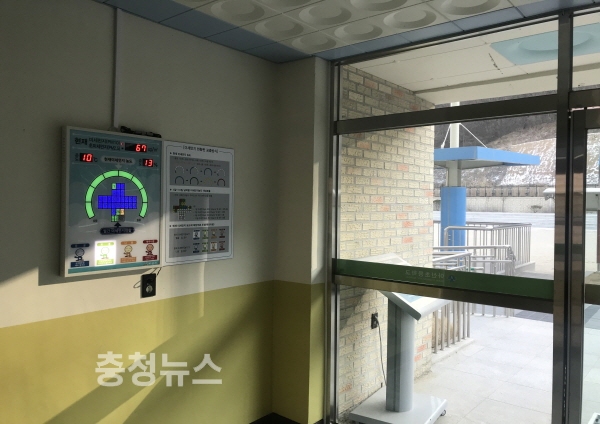 충남 아산시가 지난 29일 미세먼지 취약계층인 초등학생들의 건강을 보호하기 위해 전국최초로 관내 45개 모든 초등학교에 미세먼지 알림판을 설치했다.