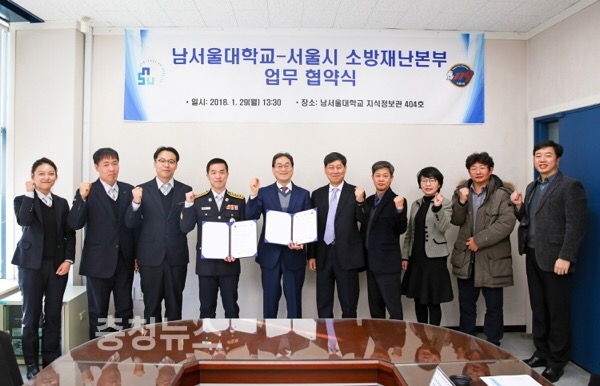남서울대학교(총장 공정자) 가상증강현실센터와 서울시 소방재난본부 재난현장 지휘역량강화센터는 가상현실 재난구조 솔루션 개발을 위해 29일 업무협약을 체결했다.