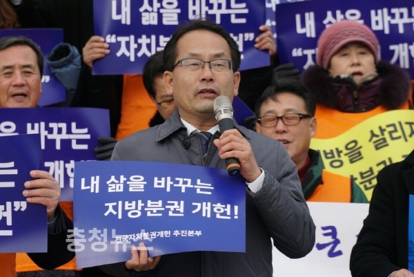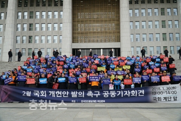 세종시 강준현 정무부시장은 30일 서울 여의도 국회 앞에서 전국자치분권개헌 추진본부와 헌법개정과 선거제도개혁을 위한 전국 시민사회, 노동, 자치단체 관계자 등 1000여 명과 함께 개헌과 선거제도 개혁을 촉구했다.