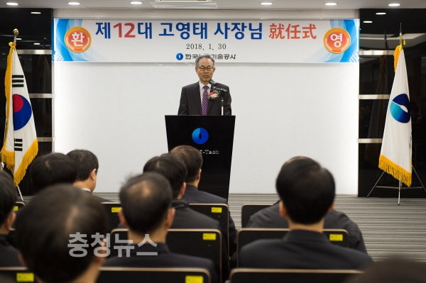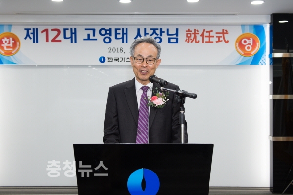 한국가스기술공사 신임 고영태 사장이 30일 오전 대전 본사 대강당에서 취임식을 갖고 본격적인 집무에 나섰다.