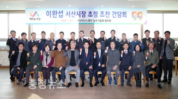 충남 서산시는 31일 성연면 서산테크노밸리 내에 위치한 세정산업에서 테크노밸리 입주기업인과 조찬간담회를 갖고 기업의 애로사항 청취, 상생발전 방안 등을 논의하는 시간을 가졌다.