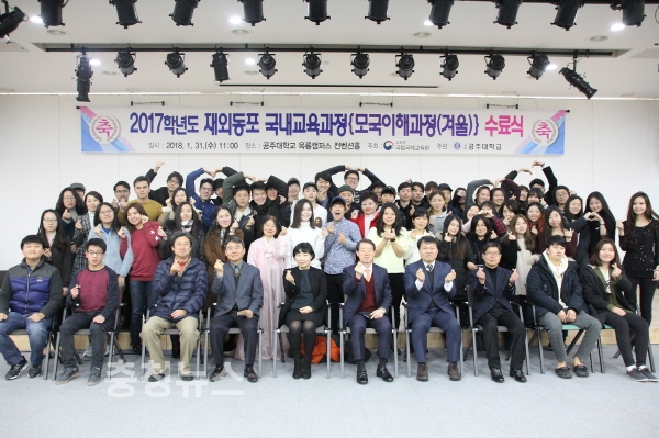 공주대학교(총장직무대리 김희수)는 31일 한민족교육문화원 컨벤션홀에서 양병찬 한민족교육문화원장을 비롯한 국립국제교육원 재외동포팀 정원숙 팀장 등 관계자가 참석한 가운데 ‘2017 재외동포 국내교육과정’ 모국이해(겨울)과정 수료식 행사를 가졌다.