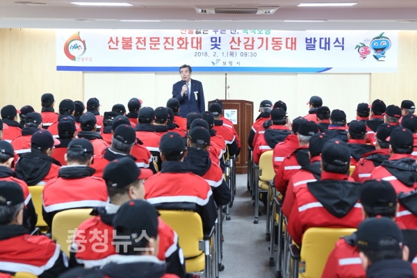 충남 보령시는 1일 시청 대회의실에서 산불 전문 예방 진화대 및 산불 감시 기동대 발대식을 갖고, 본격적인 봄철 산불비상 근무체제에 돌입했다.