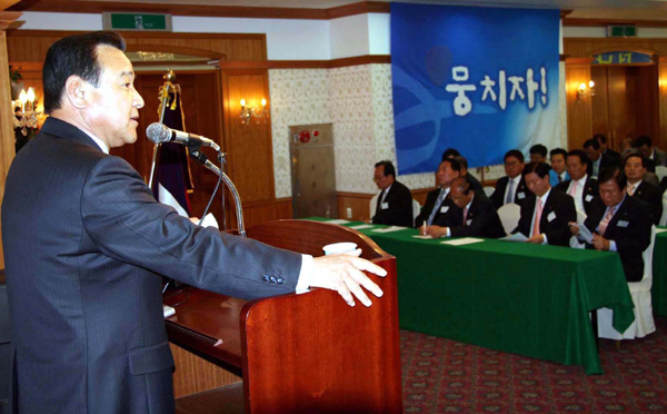 ▲ 한나라당 충남도당 핵심당직자들에게 특강하는 이완구지사