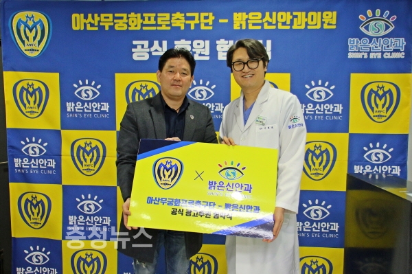 아산무궁화프로축구단이 밝은신안과의원과 후원 협약을 맺었다.