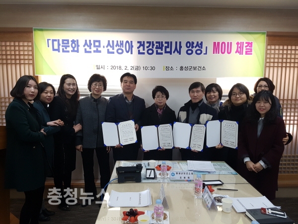 충남 홍성군보건소는 지난 2일 다문화 이주여성을 위한 ‘다문화 산모·신생아 건강관리사 양성 사업’을 위해 산모 신생아 건강관리사 교육 및 건강관리 제공기관인 미소맘, 해피케어, 다문화가족지원센터 총 3개 기관과 MOU를 체결했다.
