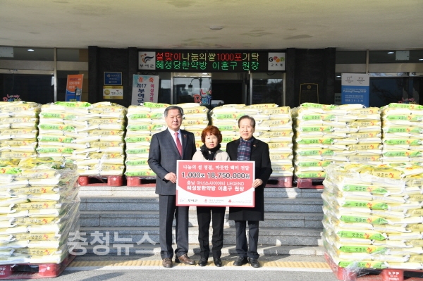 사회복지공동모금회 고액 기부 클럽 아너소사이어티 충남 1호 회원인 혜성당 한약방 이훈구 원장은 우리 고유명절인 설을 맞아 쌀 10kg 1000포(시가 1천875만원)를 부여군에 전달했다.
