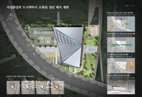 시는 이번 설계공모 심사에서 조망과 효율적인 접근성 확보, 자연환경 등을 고려한 친환경적인 계획을 적용하여 사업부지의 효율적인 활용방안 및 부지 북쪽으로 향후 조성될 광역복지센터 및 동쪽의 삼성천과의 연계성, 이용자의 편의증진 등을 고려하여 작품을 선정했다.