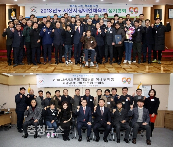 서산시 장애인체육회는 지난 5일 시청 중회의실에서 회장인 이완섭 시장을 비롯한 임원과 가맹경기단체장, 생활체육위원 및 이사 등 50여명이 참여한 가운데 2018년 정기총회를 개최했다.