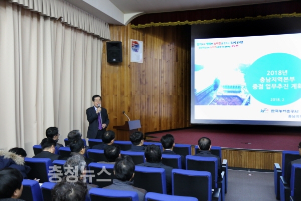 김병찬 한국농어촌공사 충남지역본부장은 8일‘2018년 본부 경영방향의 전 직원 공유를 통한 최우수 본부로 도약’이라는 주제로 본부와 지사직원 150명을 대상으로 토론회 시간을 가졌다.