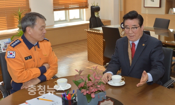 윤 의장은 8일 조종묵 소방청장을 만나 충남도내 소방복합치유센터 건립을 건의했다.