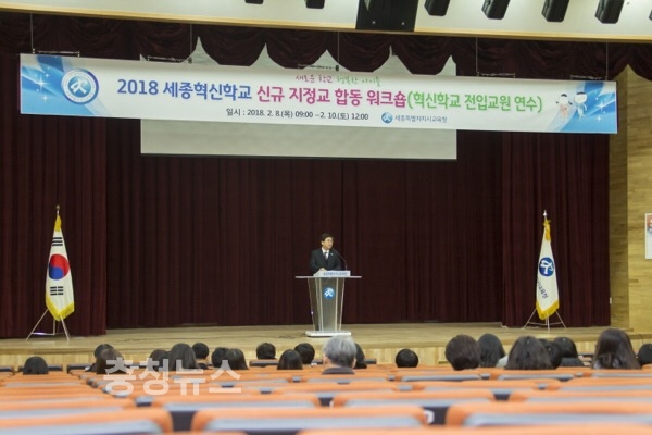 세종특별자치시교육청(교육감 최교진)은 8일부터 10일까지 2박 3일간 세종시교육청 2층 대강당과 한국문화연수원(공주시 사곡면 소재)에서 ‘2018학년도 세종 혁신학교 지정교 합동 워크숍’을 운영한다고 밝혔다.