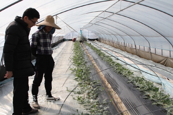 수박은 부여, 규암지역에 1월 상순 조기정식이 이루어지고 있고 현재 생육초반기로써 저온 한파가 지속됨에 따라 시설 내 온도가 5~6℃까지 떨어지는 등 전년과 비교할 때 약 1주일가량 생육이 지연되고 있는 상태이다. 부직포 터널보강, 낮 동안 최대한 일조량 확보, 지온관리 등 생육촉진을 유도하는 방법을 교육했다.