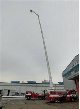 또, 바스켓에 설치된 자동방수포(분당 방수량 2,800ℓ, 좌우140°, 상하 85°회전)는 무인방수가 가능하여 소방관의 접근이 어려운 화재 현장에서도 진압 활동을 할 수 있다.