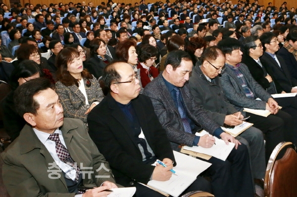 충남교육청(교육감 김지철)은 19일부터 20일까지 천안상록리조트와 캠코인재개발원에서 도내 유・초・중・고・특수학교 교(원)장 790명이 참석한 가운데 상반기 학교문화 혁신 및 교사 학습공동체 활성화를 위한 2018학년도 1학기 교(원)장 회의를 개최했다.