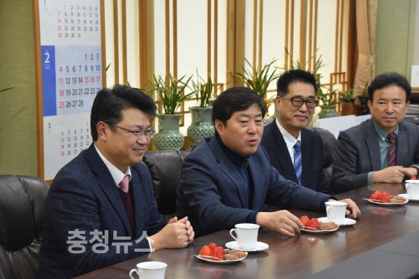 복기왕 예비후보가 20일 오전 논산시청을 방문하고 황명선 시장 및 시청 주요간부들과 면담을 가졌다.