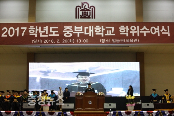 중부대학교가 20일 오후, 충청캠퍼스 범농관에서 ‘2017학년도 학위 수여식’을 개최하고 박사 및 석사 258명과 학사 1,626명을 배출했다.
