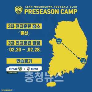 광양에서 열린 1차 전지훈련을 통해 몸 상태를 끌어올렸고, 2차 남해 전지훈련에서 수원, 인천, 전남등 K리그1 팀들과의 연습경기를 통해 경기력과 세부적인 전술 완성도를 높이는데 집중하며 조직력을 다져온 아산은 울산현대와의 연습경기를 마지막으로 시즌 준비에 박차를 가할 계획이다.