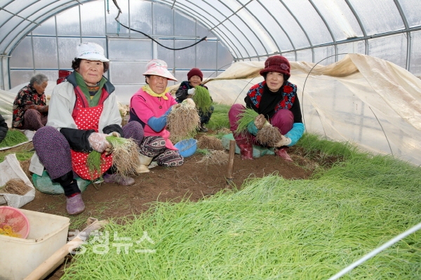 원북면 반계리 주민들이 봄의 전령사로 손꼽히는 태안군의 대표 특산물 달래를 수확하고 있다.