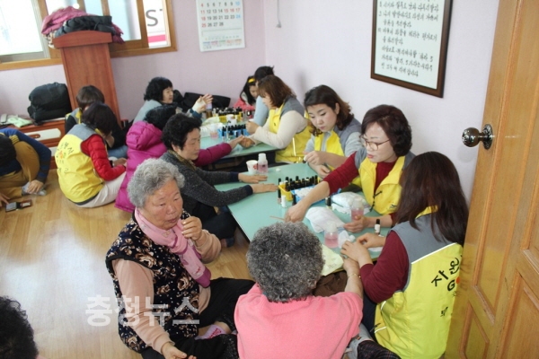 이날 전문봉사활동은 부여군자원봉사센터에 소속된 7개단체가 테이핑요법, 수지침, 이혈요법, 발마사지, 이·미용, 네일아트 등 7개분야에 걸쳐 봉사활동을 전개해 지역주민들에게 큰 호응을 얻었다.