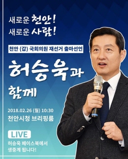박찬우 전 의원(한국당)이 의원직을 상실하면서 재선거가 치러지는 천안갑 지역에 더불어민주당 소속 허승욱 전 충남도 정무부지사가 26일 출마기자회견을 열고 출마를 공식 선언할 예정이다.