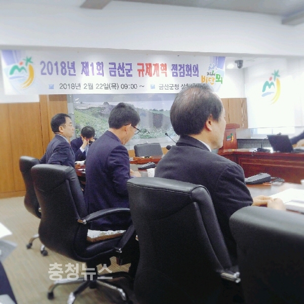 충남 금산군은 지방분권의 기조에 발맞춰 금산군 지역의 특성에 맞는 규제환경 조성을 위하여 ‘지방분권형 규제환경 조성과제 발굴’을 주제로 지난 22일 2018년 규제개혁 점검회의를 개최했다.