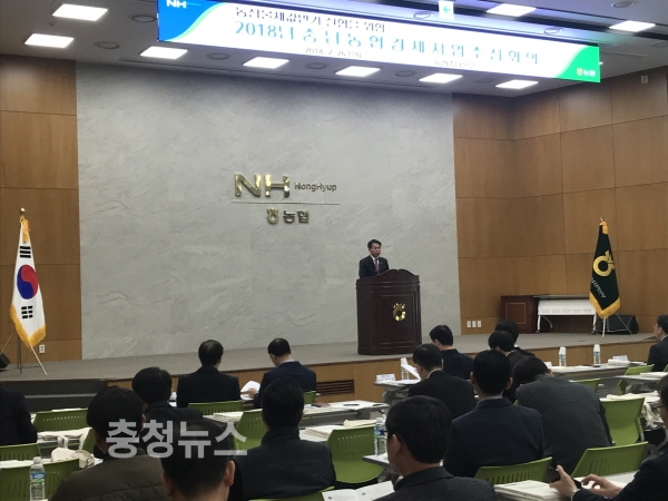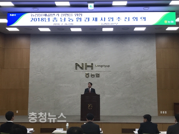 농협 충남지역본부(본부장 조소행)는 26일 충남 홍성군 내포신도시에 위치한 농협충남본부 대회의실에서 조소행 충남농협본부장을 비롯한 시군지부 농정지원단장, 지역농·축협 경제상무 등 200여명이 참석해 ‘2018년 경제사업추진 전략회의’를 개최했다.