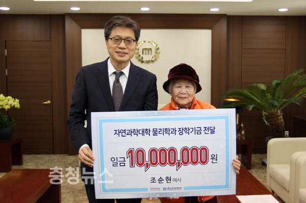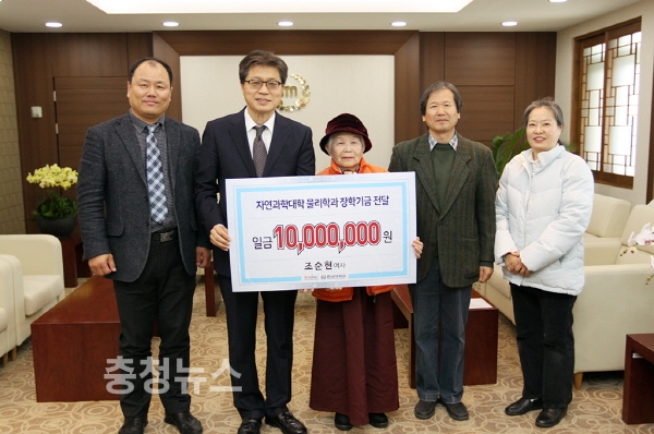 하지만 심경무 교수는 어머니로부터 받은 1000만원을 후학 양성에 쓰자는 의견을 전달하고 어머니와 뜻을 모아 충남대 물리학과에 기탁하기로 결정했다.