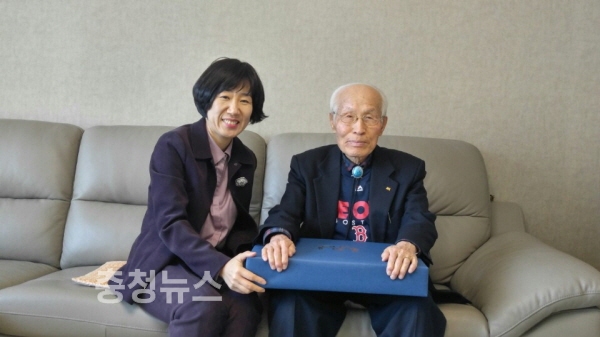 강윤진 청장은 대통령명의 위문품 및 처장명의 생신 축하 선물을 전달하면서, 감사와 존경의 마음을 전하고 지사의 건강을 기원했다.