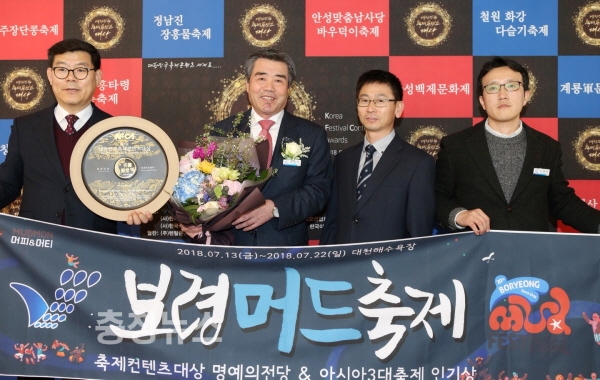 충남 보령시는 27일 오후 서울 더케이호텔에서 열린 제6회 대한민국 축제콘텐츠 대상 시상식에서 보령머드축제가 명예의 전당 및 아시아 3대 축제 인기상 등 2개 부문에서 수상했다고 밝혔다.