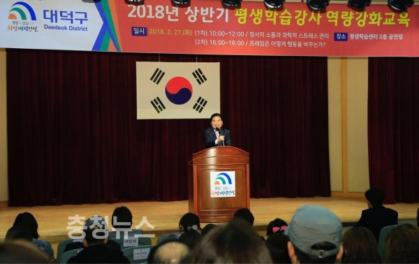 이날 교육에 앞서 박수범 대덕구청장은 “지난해 새롭게 시작된 배달강좌제가 평생학습 대표 브랜드로써 도약하는 뜻깊은 자리로 주민들이 학습으로 더욱 더 행복해지길 바란다”며