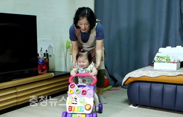 천안시 수호천사 긴급출동 사업으로 아이돌보미인 수호천사가 아이를 돌보고 있는 모습