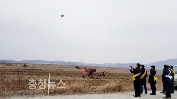 충남 서산시가 지난 27일 한국농어촌공사 천수만사업단의 드론을 활용해 서산A지구 간척지내 농경지에서 액비 불법 살포에 대한 특별 지도점검을 했다.