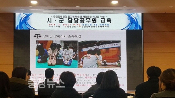 충남도는 28일 천안시청 대회의실에서 ‘중증장애인생산품 우선 구매 시·군 담당 공무원 교육’을 실시했다.