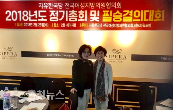 한편, 최 의원은 이날 자유한국당 전국여성지방의원협의회 2018년도 정기총회 및 필승결의대회에 참가하는 등 최근 광폭행보를 이어가고 있으며, 오는 6월 지방선거에서는 비례대표를 벗어나 대덕구 2선거구(비래동, 송촌동, 중리동)로 출마해 재선을 겨냥하고 있다.